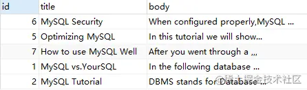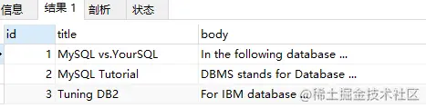 上述语句,查询 title,body 列中包含 'MySQL' 关键字的行数量。上述语句还可以这样写: