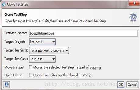 二、弹出窗口“Clone TestStep”如下截图所示: