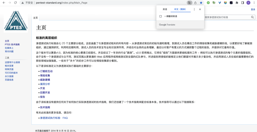 如渗透测试执行标准,里面会介绍一些渗透测试的理论知识,侧向理论多一点,不推荐初学者看,这里只是提一下,网址如下: