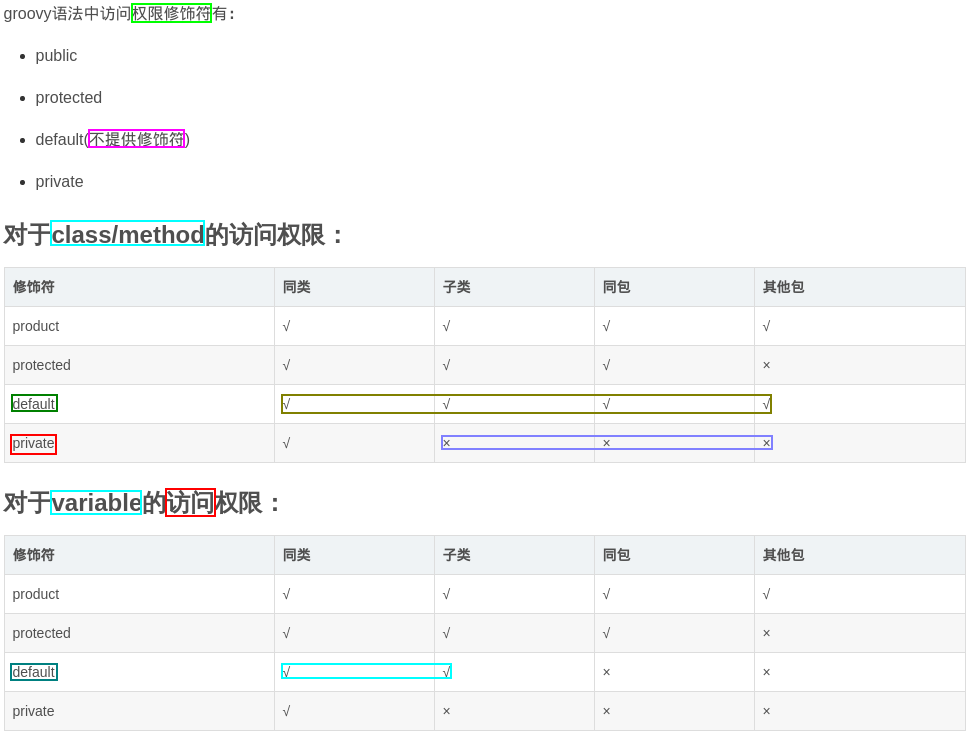 备注: 没有找到合适的图说明groovy的'修饰符',Groovy没有'default'的修饰;或者说'defaault'修饰和'Java'有差异性