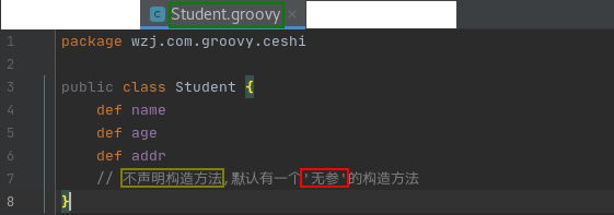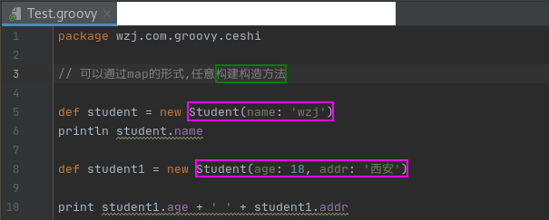 说明: 不需要给Groovy'编写构造器',就'可以使用'构造器