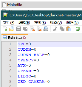 - 点开Makefile,将需要的选项设置为1,如图上图,使用GPU和CUDNN;