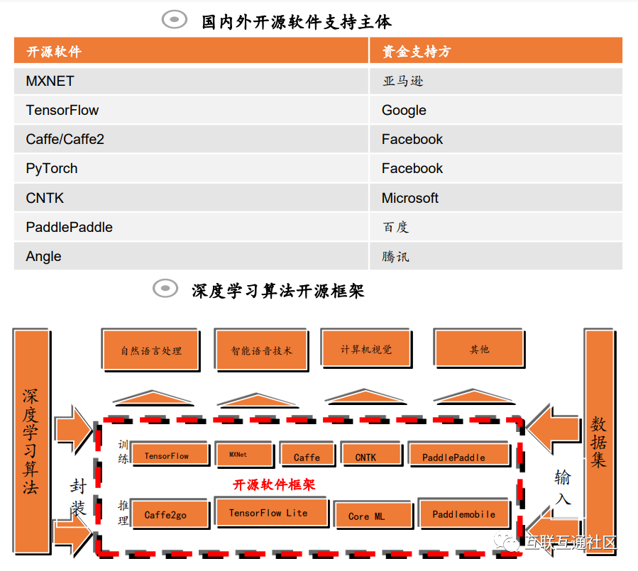 软件框架功能:随着基础算法的成熟以及趋于稳定,算法发展重点转向于工程实现——软件框架, 很多企业开始转向于建设算法模型工具库,将算法封装成软件框架(含闭源和开源),提供给开发者使用。