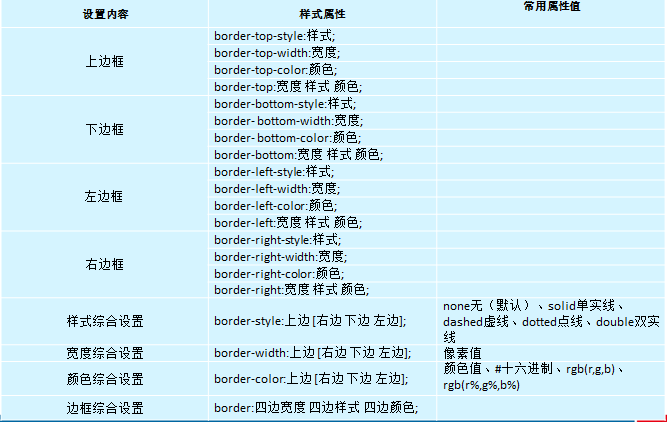 边框、外边距、内边距、背景、定位、元素宽高属性等。