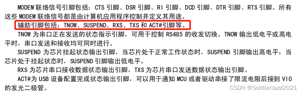 RXS和TXS引脚,手册上写的比较少,是串口接收和发送数据的状态输出引脚。这个我实际测试了下,比传统的直接在TXD和RXD上接LED的准确直观的多。传统方式下受到串口波特率以及通讯间隔的影响,LED闪烁效果不好。