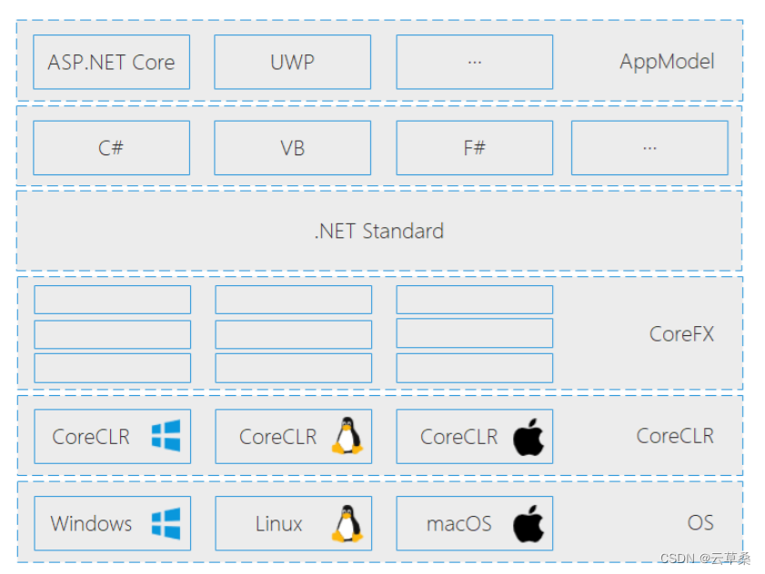 所以微软把.net framework可以跨平台的部分提取出来,封装成标准库,这部分就是.net standard 。无论在哪个系统上,标准库里的内容是完全可以通用的。