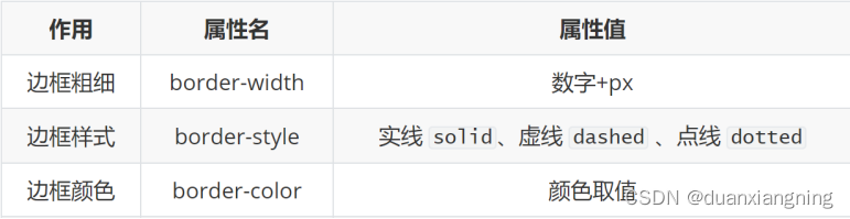作用:给设置边框粗细、边框样式、边框颜色效果