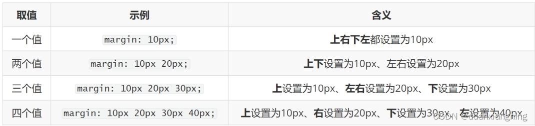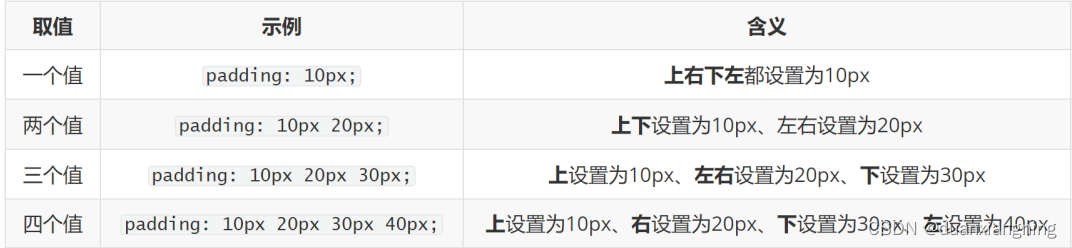 属性值:单个取值的连写,取值之间以空格隔开 如:border : 10px solid red;