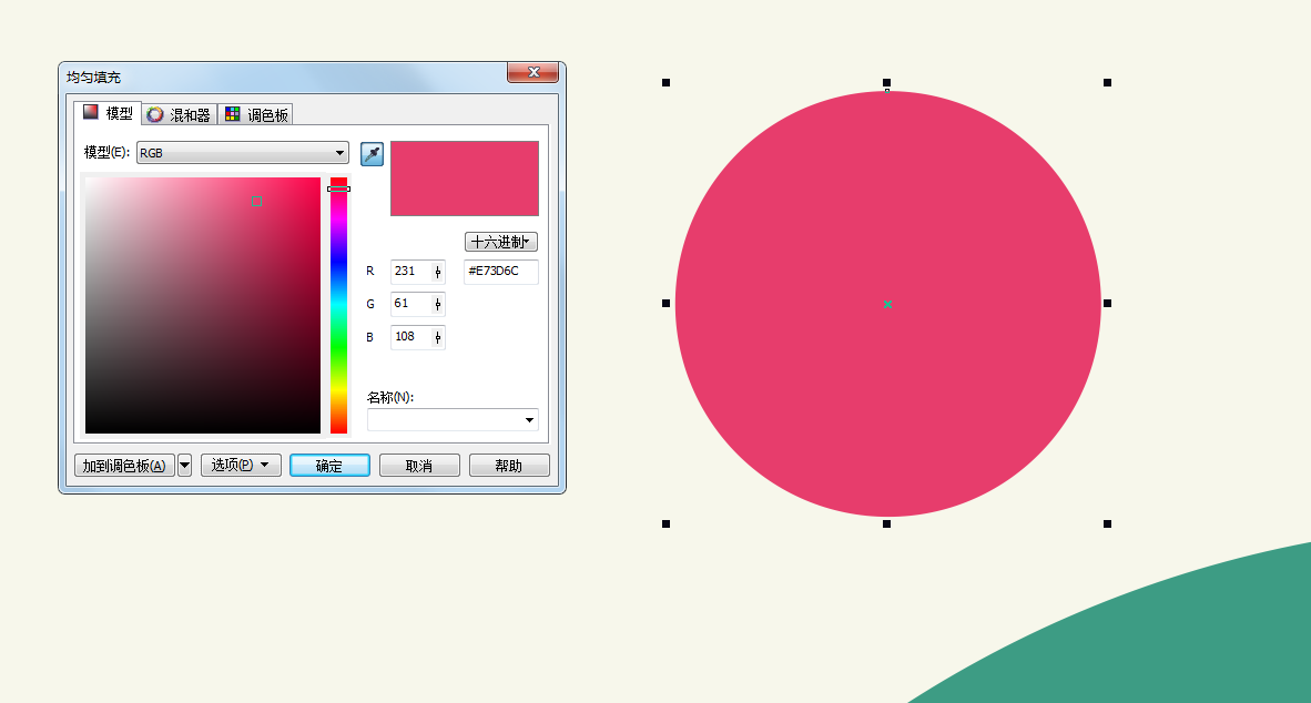 6、椭圆工具绘制一个椭圆,填充颜色