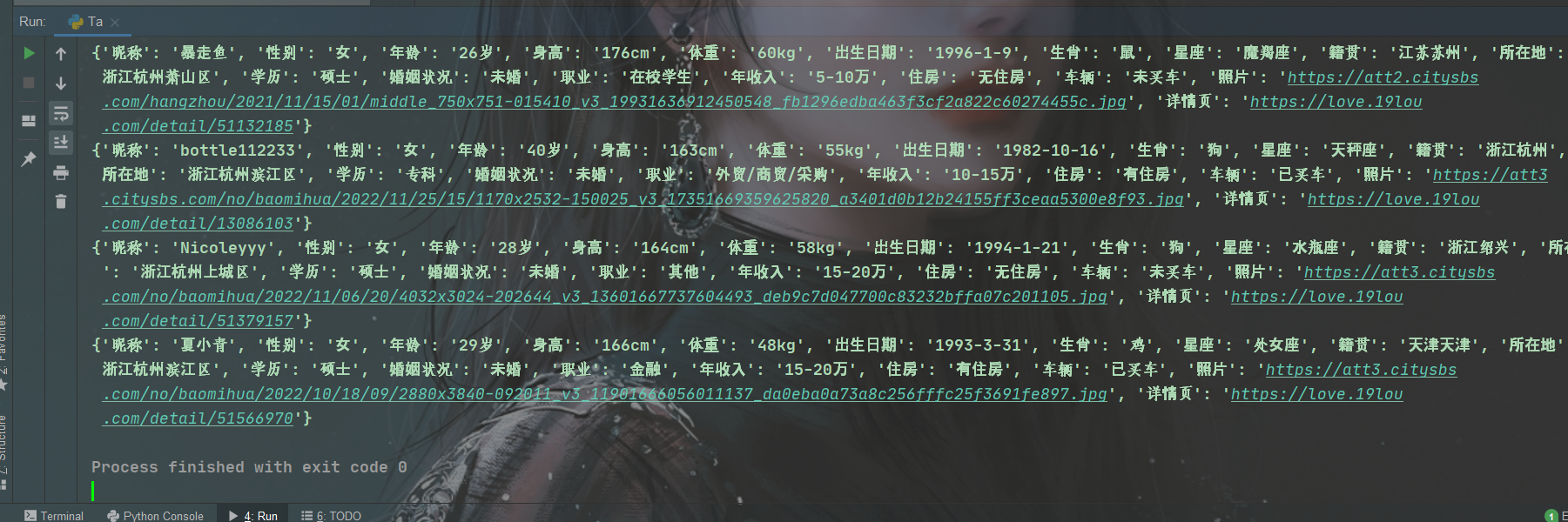 以上就是糟糕手链最近收集整理的关于单身福利专场, Python采集某相亲网站美女数据的全部内容,更多相关单身福利专场,内容请搜索靠谱客的其他文章。