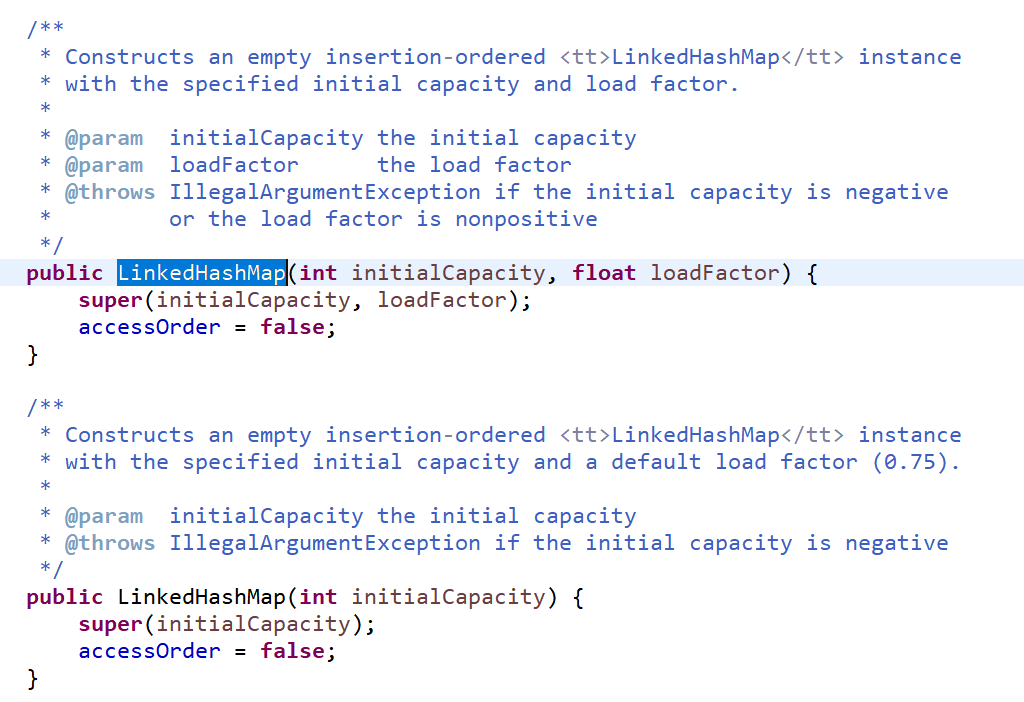 设置该值只能在创建LinkedHashMap 时通过构造方法设置的,LinkedHashMap一共有五个构造方法,只有一个能够设置AccessOrder参数