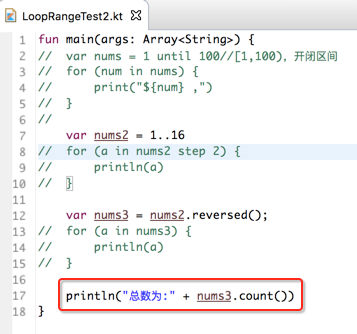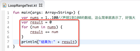 这里用一个场景来说明:计算从1到100之间数的总和,那在kotlin中是如何搞的呢?
