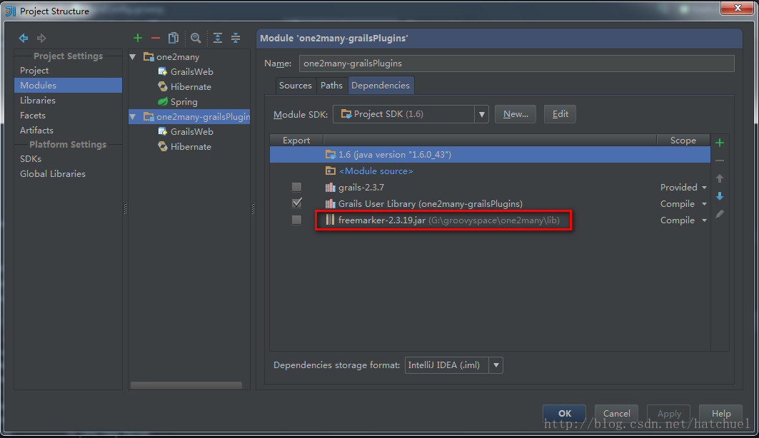打开BuildConfig.groovy,找到plugins节点,在花括号的最后加上 compile ":freemarker:0.1.1",如下所示: