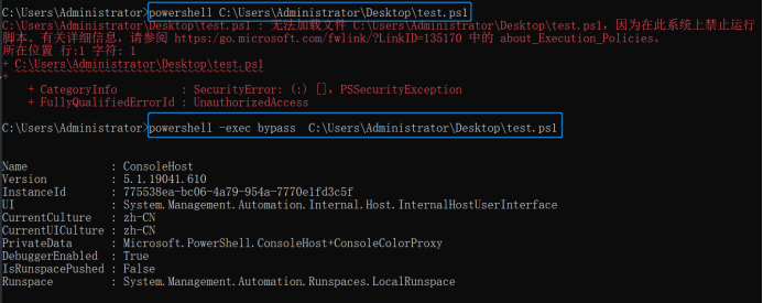 在渗透测试时,就需要采用一些方法绕过策略来执行PowerShell脚本,列举如下三种方式