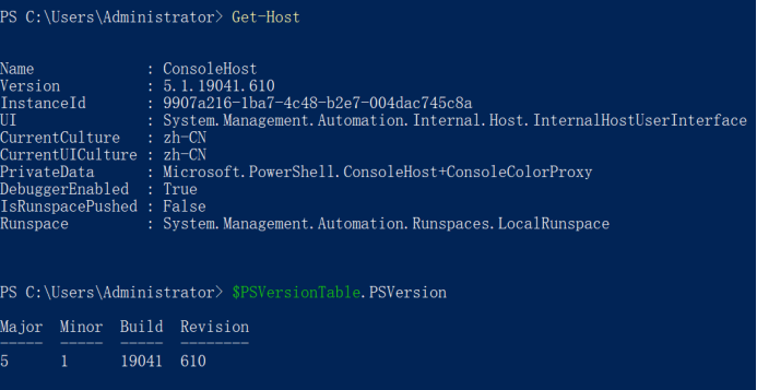 可以输入Get-Host或者$PSVersionTable.PSVERSION命令查看当前系统的PowerShell版本。