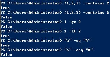 比较运算符:-eq、-nc、-gt、-gc、-lt、-le、-contains、-notcontain