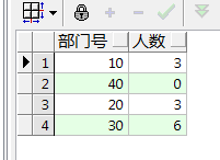3.使用外连接,按部门10,20,30,40号,统计各部门员工人数,要求显示部门号,部门名,人数