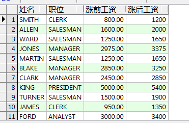 'manager',sal + 800,sal+400) "涨后工资"
