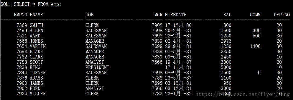 | 1 | EMPNO | NUMBER(4) | 雇员编号 |
