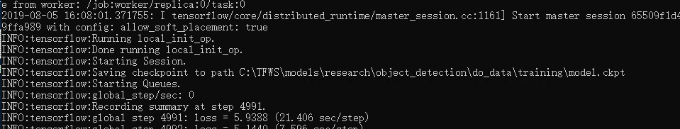 python train.py --logtostderr --train_dir=C:TFWSmodelsresearchobject_detectiondo_datatraining --pipeline_config_path=C:TFWSmodelsresearchobject_detectiondo_datatrainingssd_mobilenet_v1_coco.config --type=ps --index=0