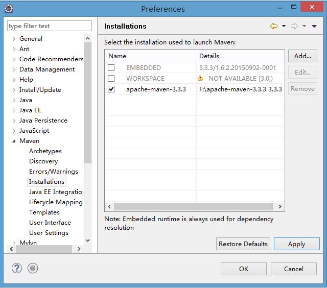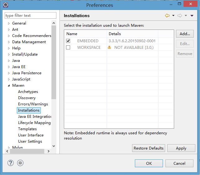 Click Add and add the installation home of maven