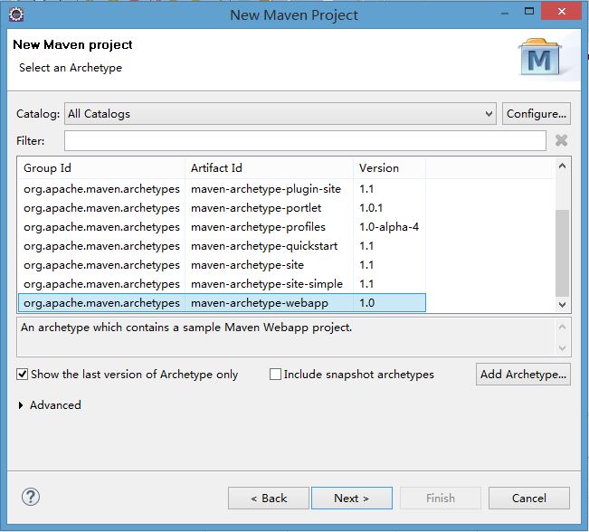 Choose maven-archetype-webapp