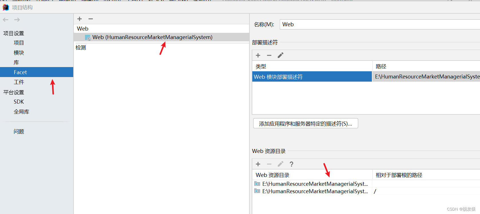 打开项目结构-->Facet-->Web