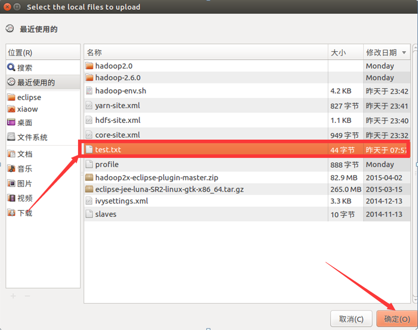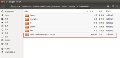编译成功后,找到放在 /home/xiaow/ hadoop2.0/hadoop2x-eclipse-pluginmaster/build/contrib/eclipse-plugin下, 名为hadoop-eclipse-plugin-2.6.0.jar的jar包, 并将其拷贝到/hadoop2.0/eclipse/plugins下