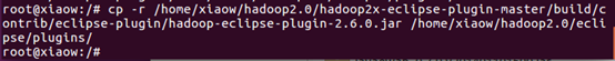 cp -r /home/xiaow/hadoop2.0/hadoop2x-eclipse-plugin-master/build/contrib/eclipse-plugin/hadoop-eclipse-plugin-2.6.0.jar /home/xiaow/hadoop2.0/eclipse/plugins/