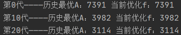 System.out.println("第" + i + "代————" + "历史最优A:" + this.A + " 当前优化f:" + this.f);