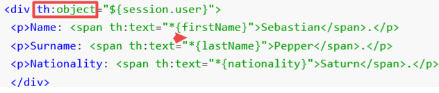 (4)选择表达式 *{...} 和${}在功能上是一样,配合 th:object="${session.user}: