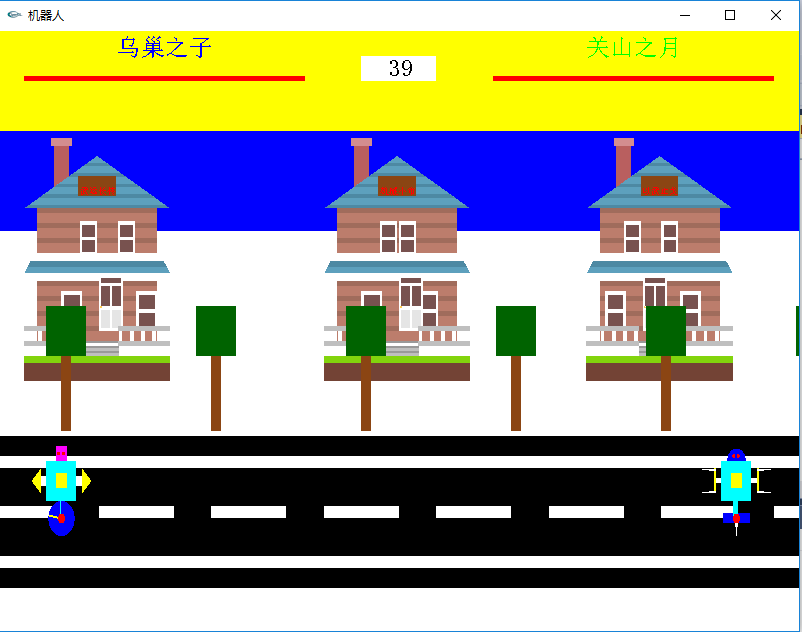 实现功能:画了机器人1(乌巢之子),机器人2(关山之月)实现其的技能有:
