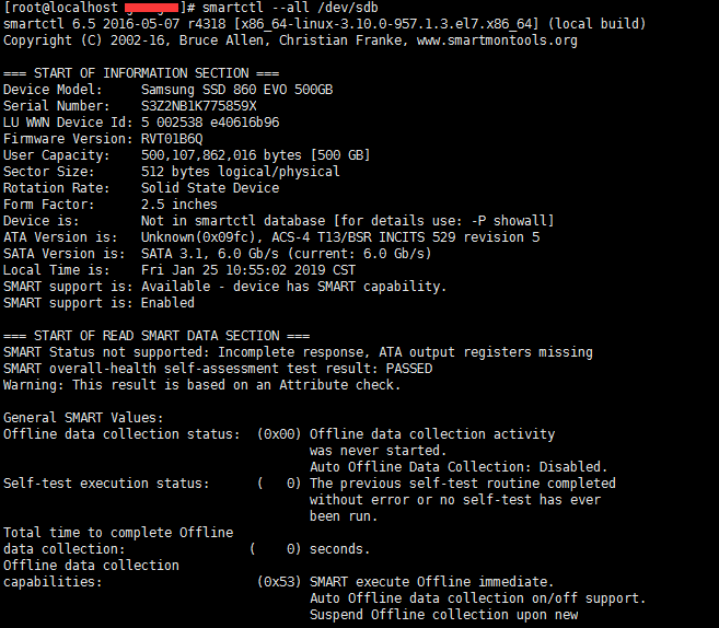 如果没有smartctl 工具可以用 yum install smartmontools安装
