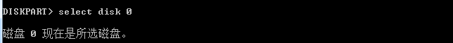 3.select disk 0 选择第一块硬盘,