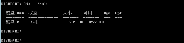 2.list disk 查看有几块硬盘,