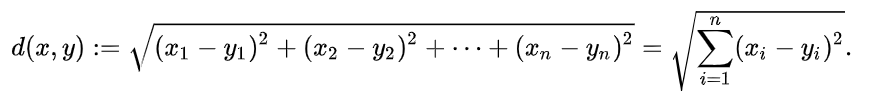 欧式距离源自N维欧氏空间中两点间的距离公式: