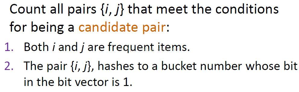 pass3中的candidate pairs中项对满足三个条件中必须要有:i和j都是频繁项; {i,j}在第一步哈希时被哈希到频繁桶中。