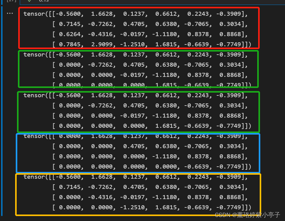 print(torch.triu(t)) # return 主对角线及其上三角的元素