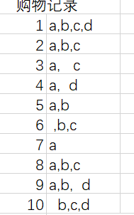 | {a}的支持度为8/10 (出现的次数/所有的记录) | |