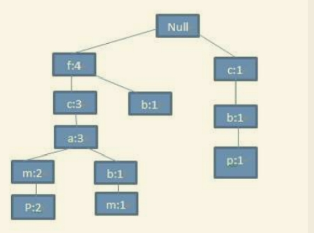 以(a,m)结尾的有频繁项集有{(am:3),(cam:3)(fam:3),(fcam:3)}