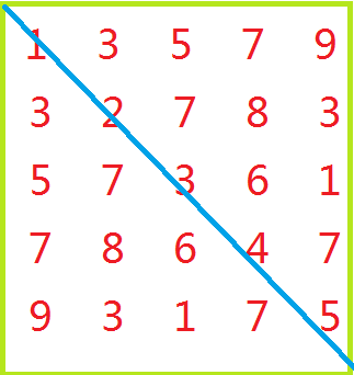 正对角线上面的那条线坐标以(0,1)开始,下一个元素的坐标同样是横纵坐标都加1