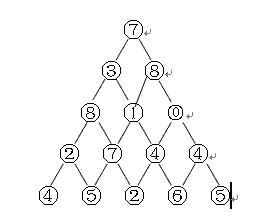 5、如图所示的数字三角形,从顶部出发,在每一结点可以选择向左走或得向右走,一直走到底层,要求找出一条路径,使路径上的值的和最大。给出算法的时间复杂度。