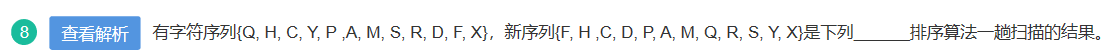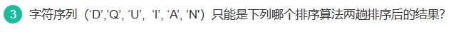 两趟排序导致QU是有序的,其他四个字母还无序,选择排序则QU应该在后面,冒泡和堆排序两趟也会使元素到达他最终位置,所以排除