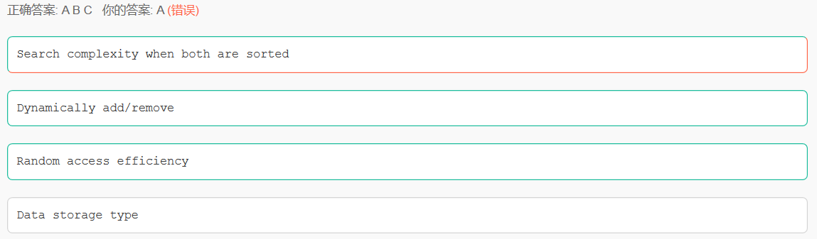A、不管在是否拍好序的情况下,数据的查找复杂度应该比链表快,以为数据可以直接定位,链表则要遍历