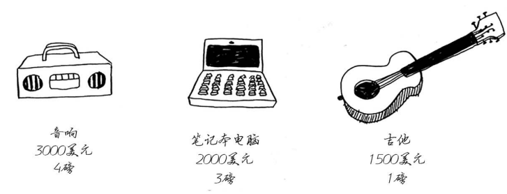 假设你是个小偷,背着一个可装4磅东西的背包。你可盗窃的商品有如下3件。