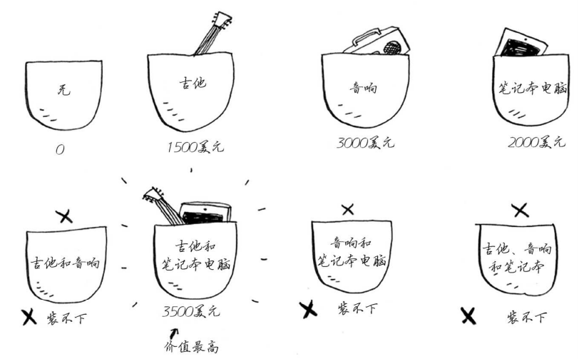 偷不偷吉他?别忘了,你要找出一个价值最高的商品集合。