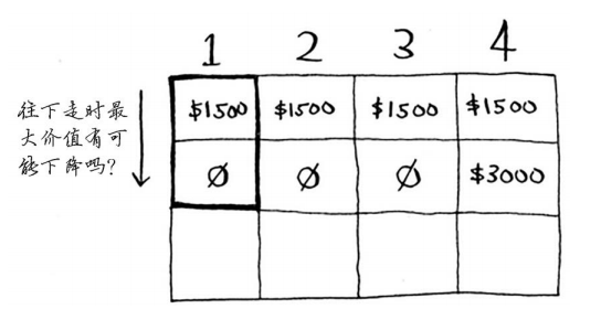 问题:沿着一列往下走时,最大价值有可能降低吗?