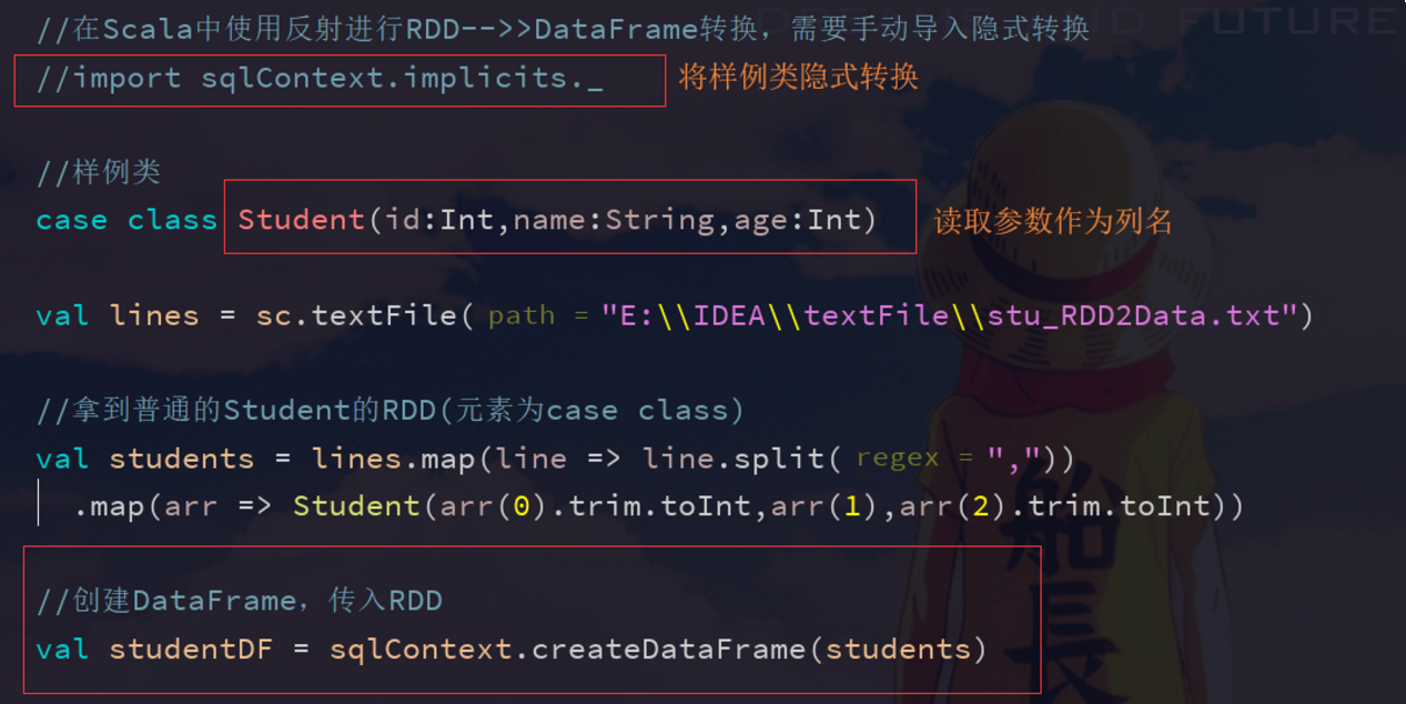 //在Scala中使用反射进行RDD-->>DataFrame转换,需要手动导入隐式转换