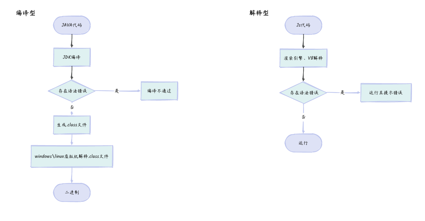 编写到可执行处理方式的不同,将编程语言分为编译型和解释型